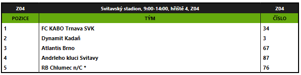 Z důvodu odhlášení týmu Mlátičky Nové Město nad Váhom byla provedena změna v rozlosování skupiny Z04 na pozici 4. Odhlášený tým nahradil nový tým Andrleho kluci Svitavy. Změna se nedotkne časů rozlosování skupiny, ani jiných skupin.